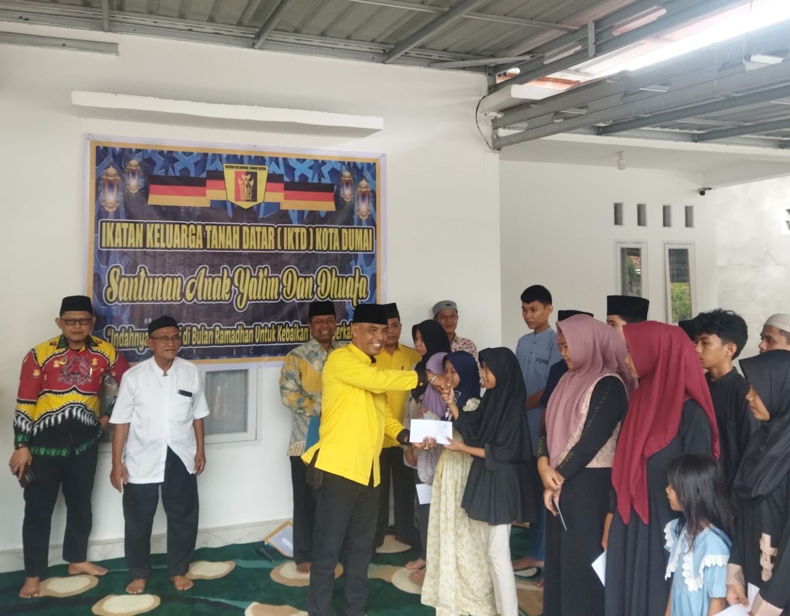 DUMAI - Pada momen bulan suci Ramadhan 1446 H / 2025 M, Pengurus Ikatan Keluarga Tanah Datar (IKTD) Kota Dumai, Bundo Kaduang Tanah Datar dan Generasi Pemuda Tanah Datar (Gettar) Kota Dumai melaksanakan kegiatan pembagian santunan kepada anak yatim dan dhuafa yang ada di keluarga besar IKTD di Kota Dumai. Minggu (23/03/2025).